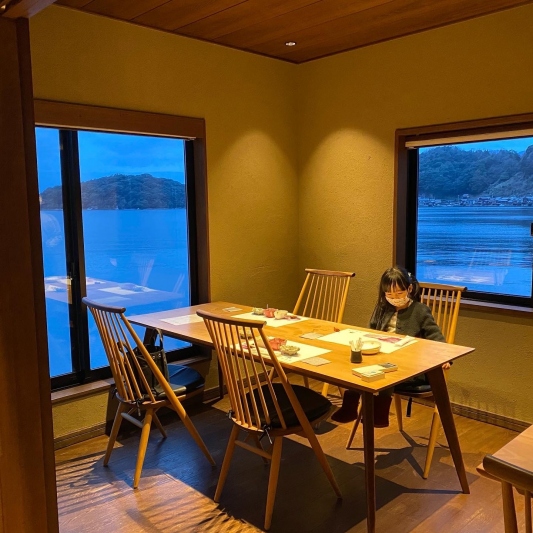 舟屋の宿まるいちは素泊まりですので夕食は海宮(わだつみ)をご紹介しております。